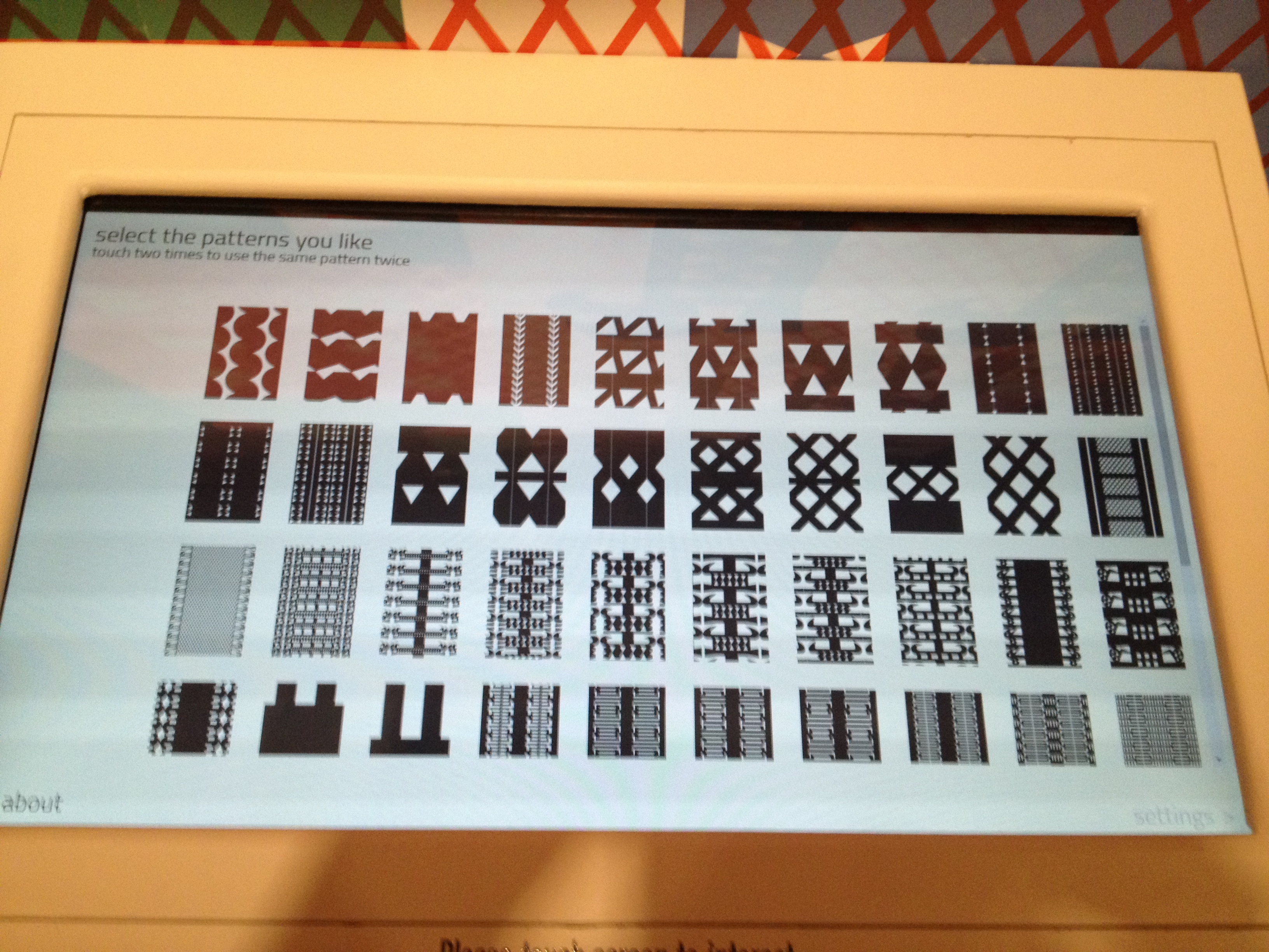 This interactive software allows the participant to layer up to five different patterns with ten color choices, ten gradient variations, as well adjusting size. There is also the ability to allow the patterns to move by scrolling across or up and down the screen. I had a great time exploring a few of the multitude of visual possibilities available with this amazing design generator.