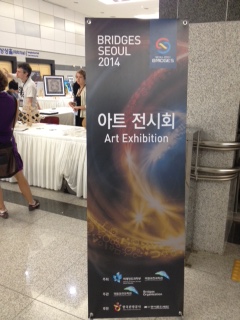 I have just returned from an amazing visit to Seoul to participate in the Bridges Conference. Bridges is an international organization that promotes the connections between Mathematics and Art, Music, Architecture, and Culture. This year the conference was a satellite conference for the huge International Congress of Mathematicians that took place in Seoul during the same week. This proximity enhanced our events by bringing numerous renowned Mathematicians (including Fields Medal winner Cedric Villani) to speak at the Bridges conference. One of the highlights of this conference is always the Art Exhibition. There was so much exciting work on display but I will only be able to discuss a small percentage in my blog.