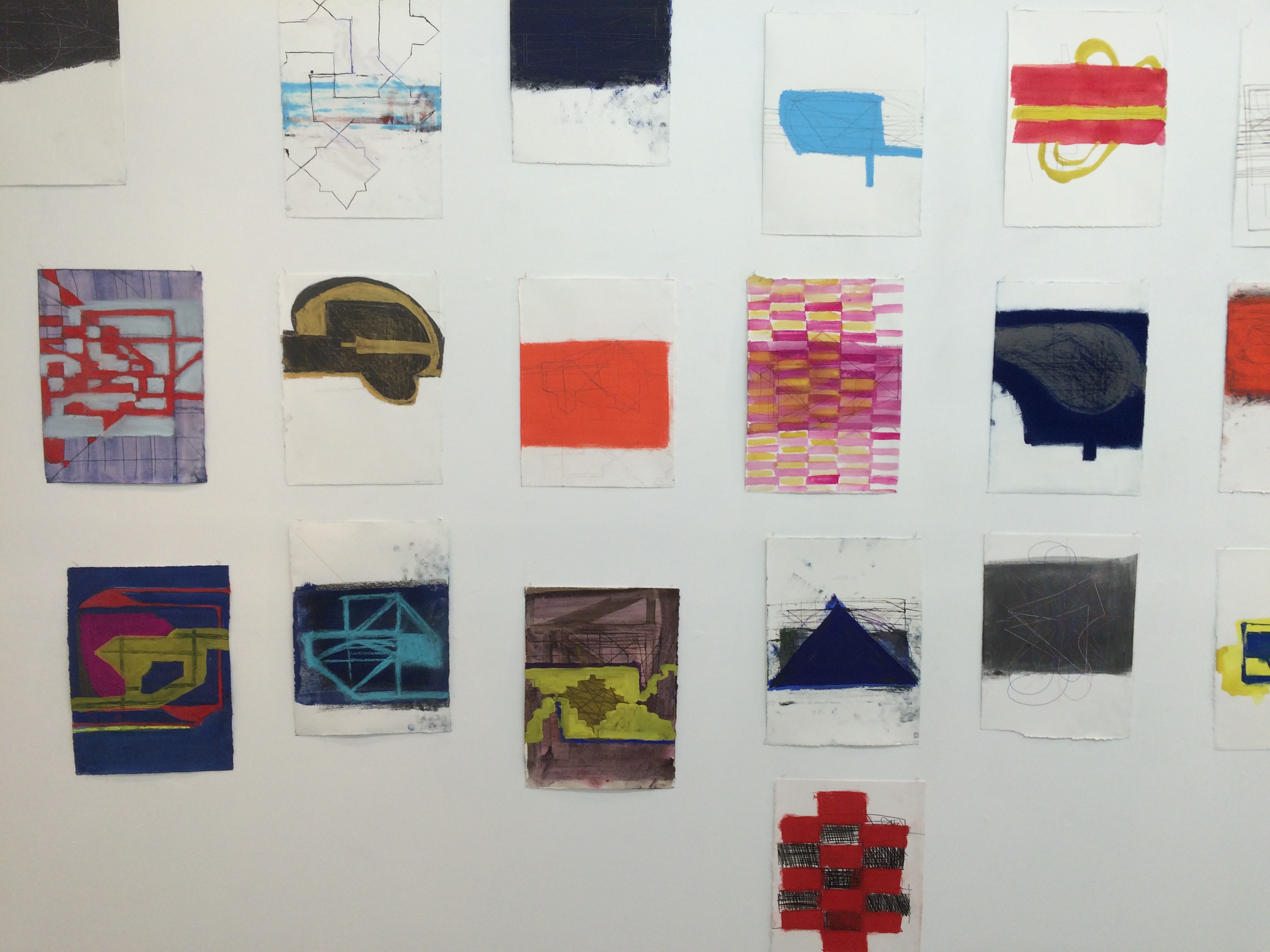 David Scanavino’s site-specific room-sized installation “Imperial Texture” is the artist’s dialog with the work of Richard Artschwager. Artschwager is well known for his use of formica to make geometric forms that have the same shape as everyday items but can not actually be used as such. His sculpture “Pyramid Object” from 1967 was displayed near Scanavino’s installation.