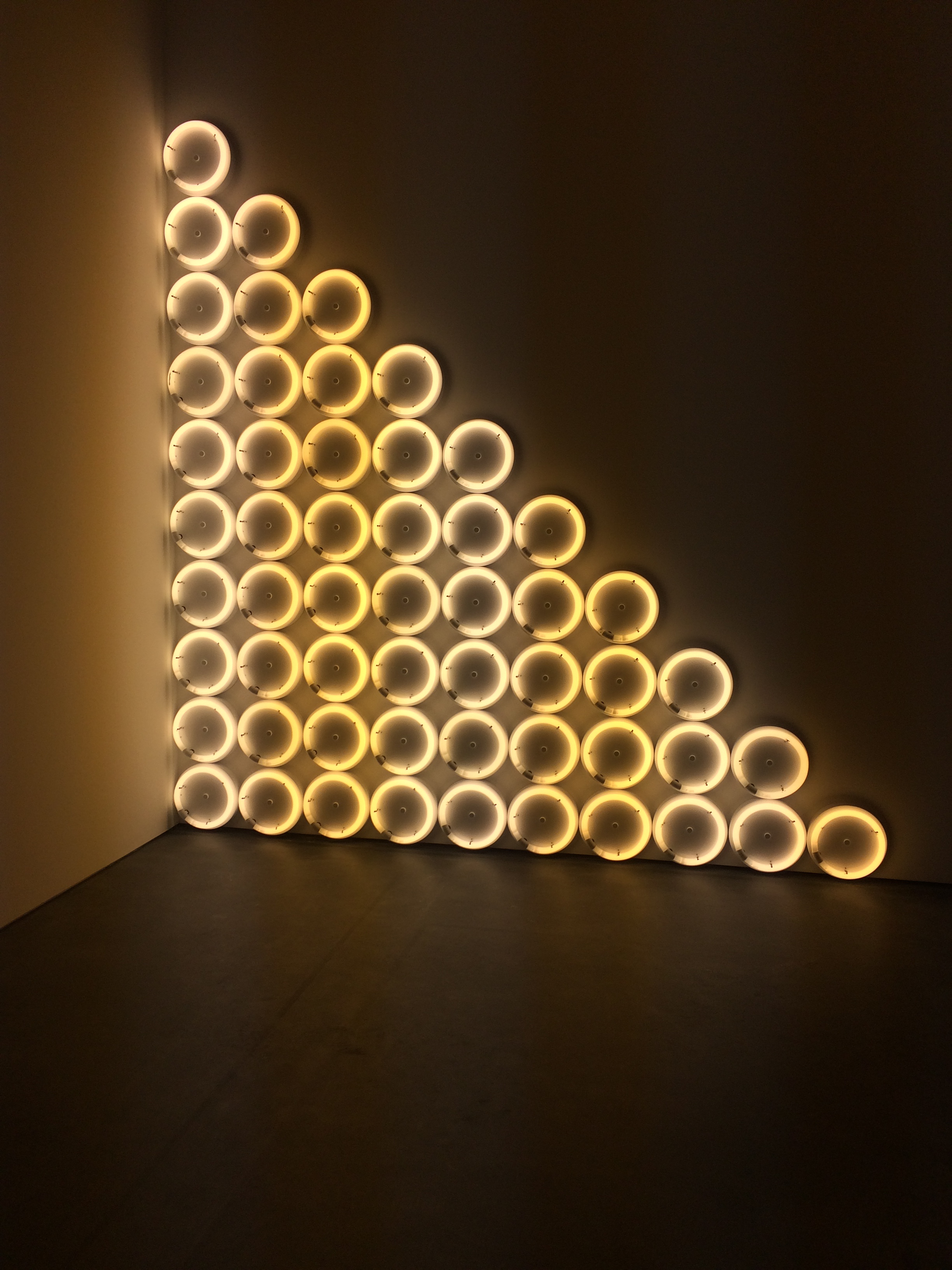 Much of Flavin’s work involved the use of straight lines and grids. I was particularly happy to see a work that was all about circles.