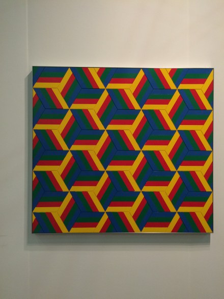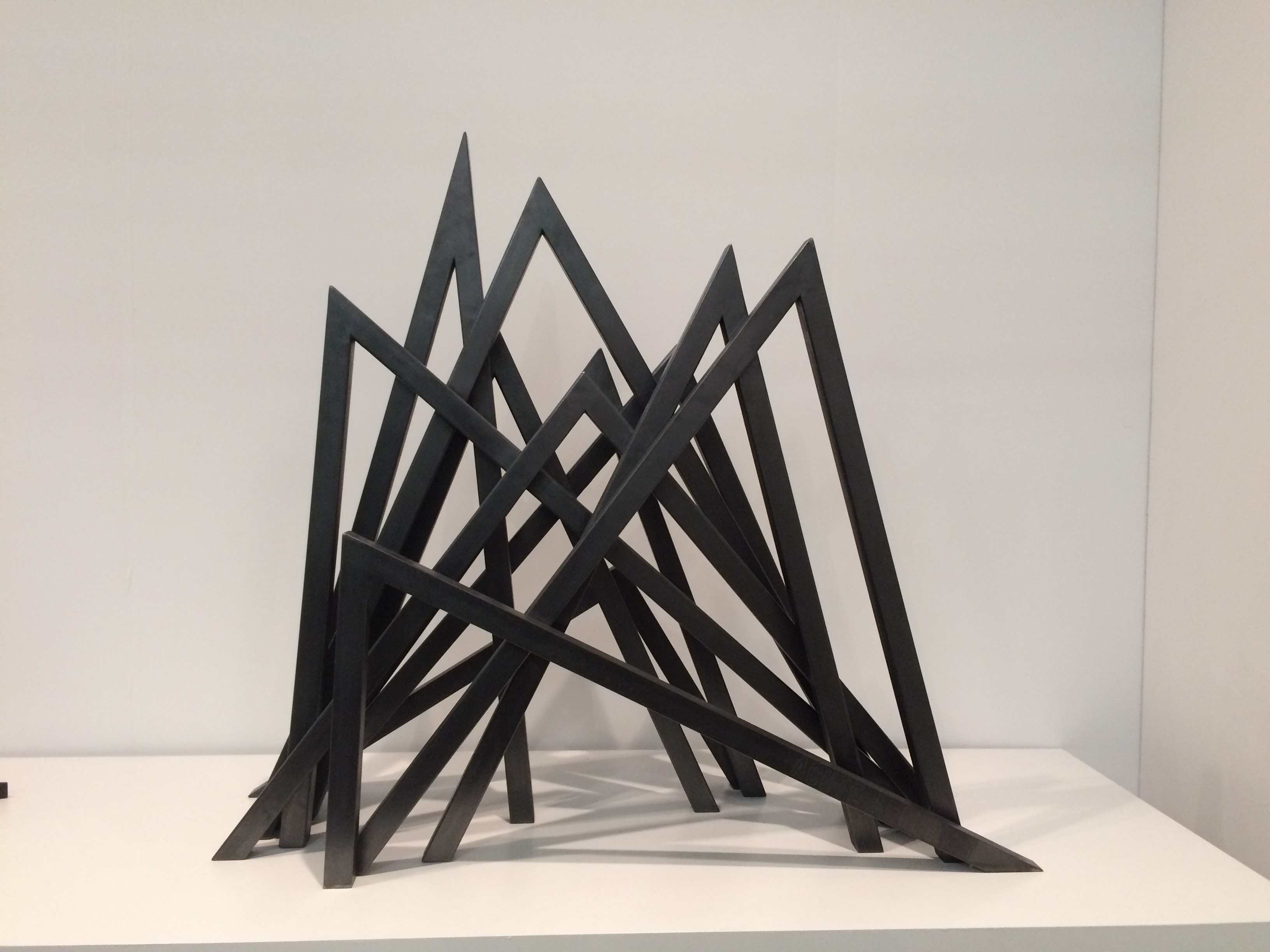 I was still in line to check my coat when I spotted Bernar Venet’s steel sculptures across the aisle. The title of the work above, “11 Acute Unequal Angles”, is a perfect description of the geometric theme of the work. It is always exciting to see work that so directly embraces the mathematics.