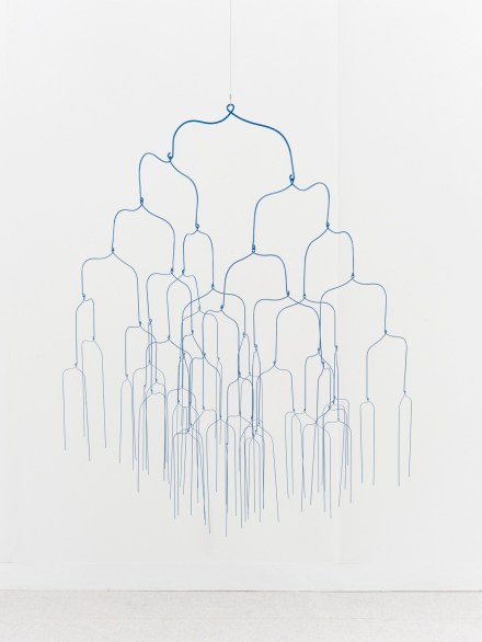 The Anne Mosseri-Marlio Galerie from Switzerland featured the work of Beth Campbell. This powder coated steel mobile titled “There is no such thing as a good decision (brilliant)” is a floating drawing presenting a schematic diagram of a series of two choice decisions. Starting from a single wire that offers two options. The number of choices doubles with each iteration.