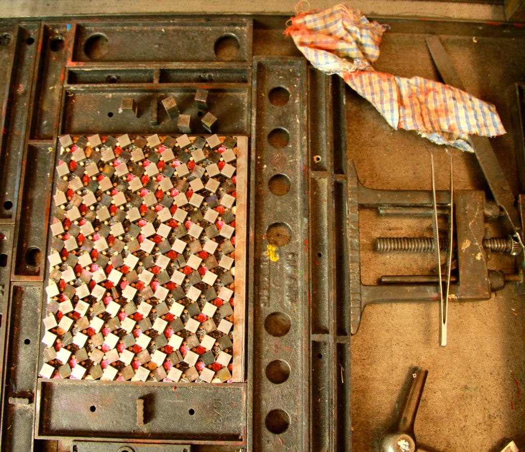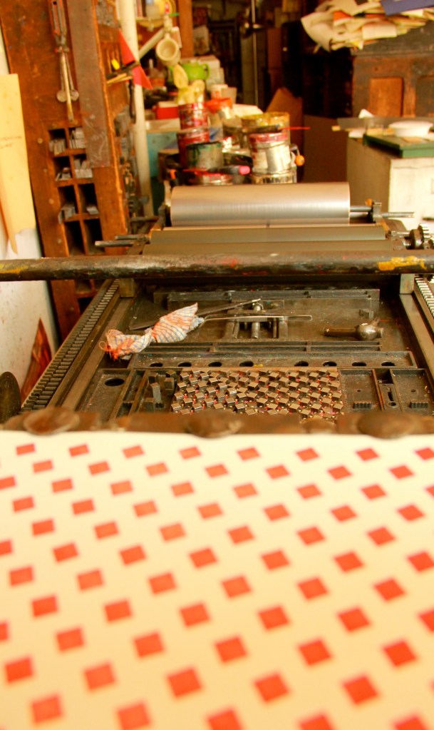 Dikko Faust is a master printer who develops beautiful tessellation patterns. Here are some of setups on the press.