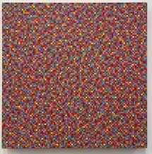 In the second exhibition space, Lisson Gallery is showing a series of recent square paintings by Tony Bechara. Each work is made up of a grid of tiny squares.