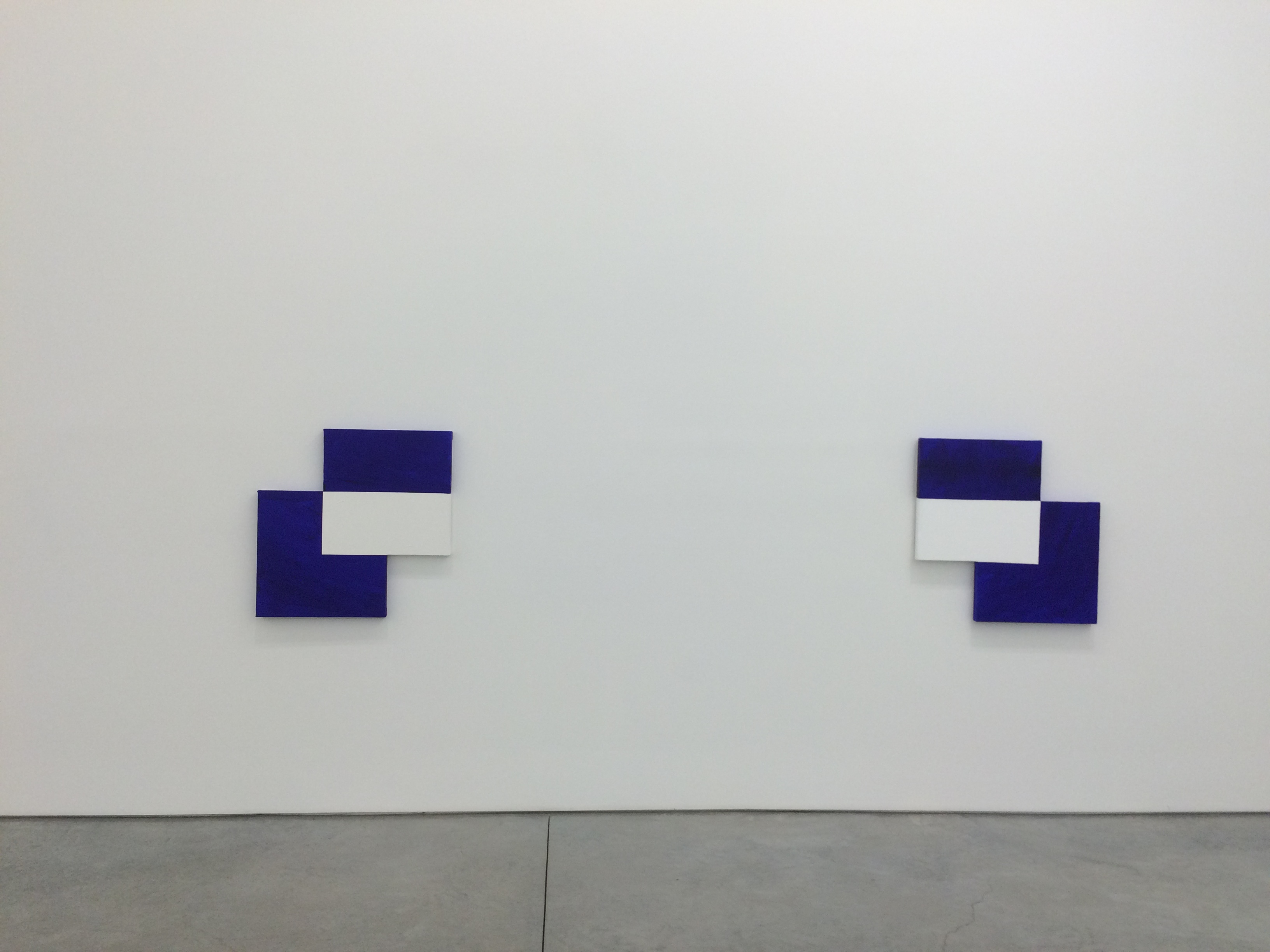 In this close up of the same panel we can see more clearly that this work is not about the accurate measurement of pure clean geometry. It is some ways more complicated, more human. This is definitely a painting about lines, triangles, positive and negative, but it is also about the artist. The personal scale makes the viewer stand close to the work and be drawn into the patterning. Art can be about mathematics with out having to use a ruler or striving for perfection.